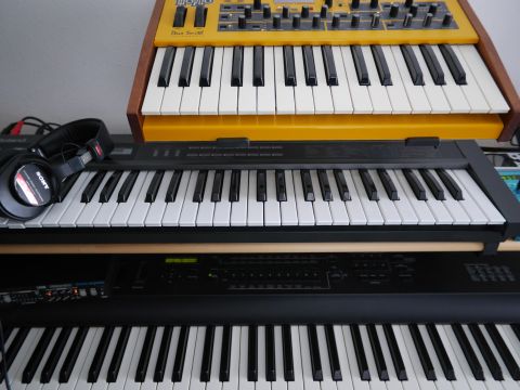 キーボードスタンドの2段目を空けて、そこにαJunoを入れた。